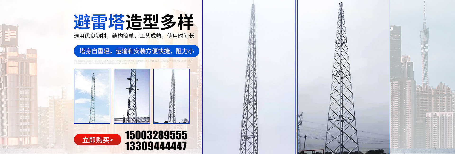 我公司主營:避雷塔、煙筒塔、瞭望塔、監(jiān)控塔、訓(xùn)練塔、電力架構(gòu)、測風(fēng)塔、工藝裝飾塔、氣象觀測塔、廣播電視塔、電力塔等, 產(chǎn)品銷售往全國各地,收到廣大用戶的好評。
